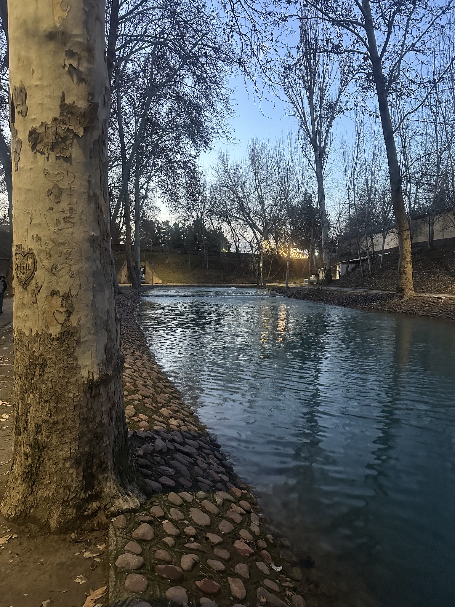 It has been cold this week in Tashkent as you can see by the sunrise photo above of the frosty turf of the school’s sports field. We have had wintry mixes of precipitation mixed with sunny skies. Temperatures are hovering around zero Celcius daily. I made a video of Ocean, Oliver and I walking the dog around our mahalla last night.