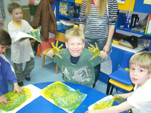 Owen is pictured above in his kinder classroom. I stopped by after my administration meeting to take a peak on the boys and how they were doing. Ollie was still sleeping from his nap time. Owen was in the midst of an art class. He was enjoying himself.