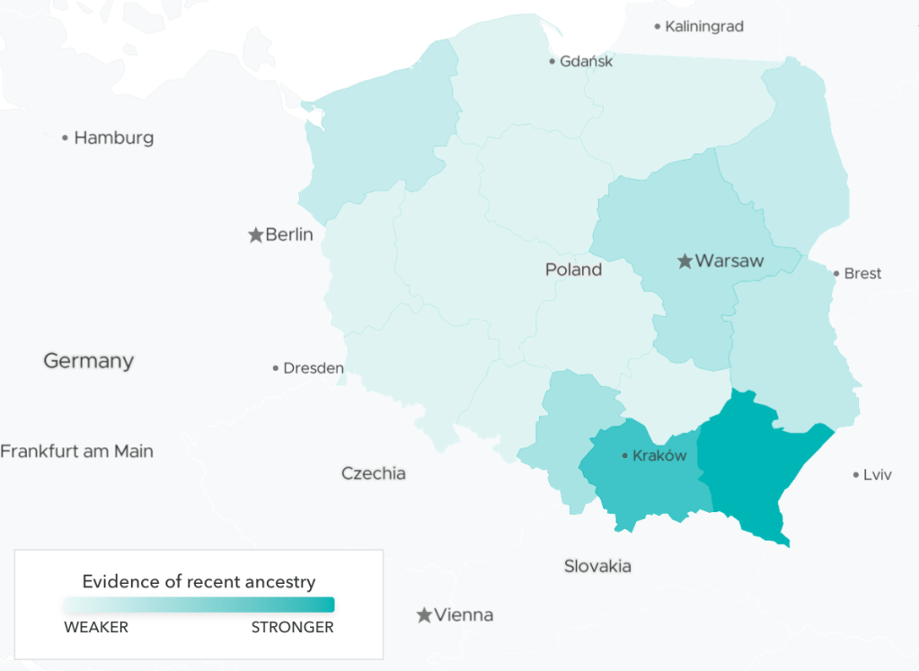 My takeaway from the two companies is my ancestry is definitely strongest in the small region of eastern Poland and Slovakia and western Ukraine. 23&Me gives me a stronger link to Poland, Ancestry.com to Slovakia.