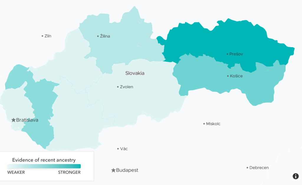 I also submitted my DNA to Ancestry.com and they to measured my ancestry as 71% Eastern Europe & Russia. They zeroed in on Eastern Slovakia. Ancestry.com’s database also identified 13.7% “Germanic Europe” primarily located in Germany and Switzerland. The Balkans and Spain both register 7% each.