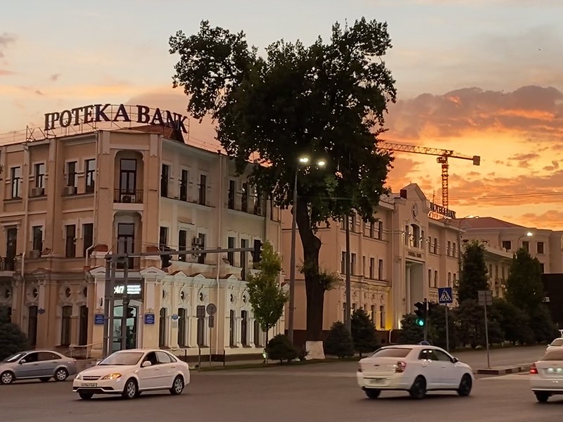 One of the crazy things about Tashkent is I often see people driving around with furniture, equipment, supplies, etc. strapped to the top of their cars. Pickup trucks are rare here so the Uzbeks make due. You would be amazed at how much stuff they can secure to the top of an old Lada car. I end this post with some some sunset photos from my walk with Obi. I love spring and summer evenings and often take the dog out for walks around the city close to sunset.
