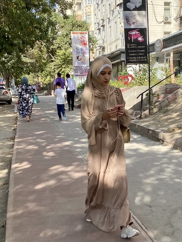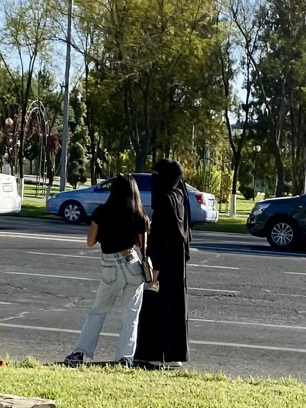 It is fascinating to see how Uzbek culture will develop after so many years in the Russian sphere of influence. The Russians have been in Central Asia since the mid-1800s and Uzbekistan has been independent for only 30 years. I am keeping my eye on the slow rise of Islam. The first president of Uzbekistan followed the Soviet model and suppressed expression of religion. The new president is allowing more freedoms, including in the religious sphere. I saw the other day that girls can legally wear headscarves to school. I live in the more Russian side of the city so don’t see many covered women in my neighborhood. However, when I walk my dog near the Samarquand Darvoza, I see many more as you can see in the photos above. I would estimate maybe a 1/4 or 1/3 of women cover their hair. The contrast between secular styles of dress and religious dress is stark, as you can see with the two women waiting for a taxi in the third photo. There are also many mosques being built or renovated around the city. I wonder what it will be like here over the next 20-30 years?