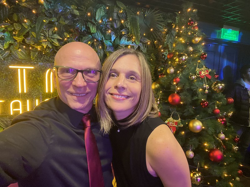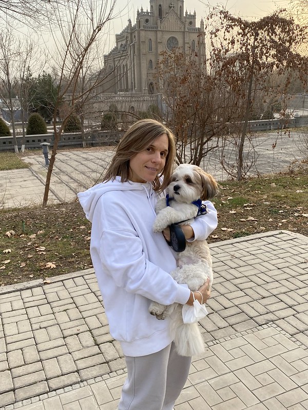 Friday night I had a board dinner at the chair’s home which was really nice. On Saturday we had the big New Years’ party for all faculty. We rented Retro Milly restaurant for ourselves. Everyone had a good time with an entertainer MC and two singers. We found time to walk Obi in the afternoon. Nadia is shown in front of the Sacred Heart Cathedral (Polish church) and we took a selfie at the party.