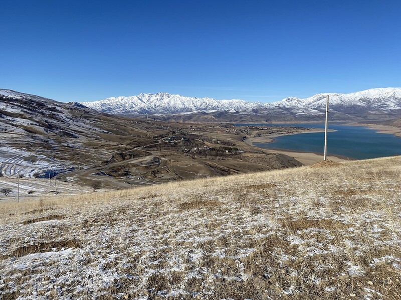 I drove around the Charvak Resavour on Sunday and went for a couple of walks with Obi in the surrounding mountains. I am always refreshed with the mountain scenery and fresh air. A strong, cold wind was bracing and made it difficult to walk on top of ridges. I noticed much less snowfall than in previous winters. I think that is definitely a concern in Central Asia that climate change is making it an even drier climate. The slow snowmelt in the spring and summer feeds freshwater to this dry climate.
