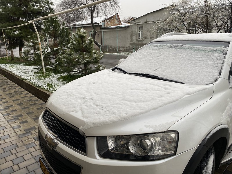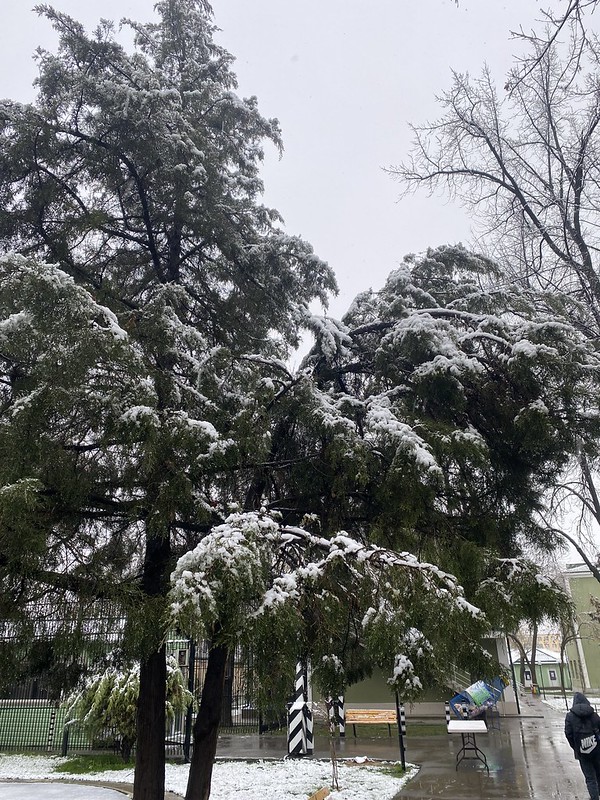 I woke up on Friday, March 18 to falling snowflakes shining under the streetlight outside the window. The snow melted by the afternoon, but it was nice to see the white snow on the trees at school. It was a weak winter here in Tashkent over 2021-2022. It snowed in the city on only 3 occasions that I can recall. I don’t think it snowed in January and February! Snow came once in early November, once on Boxing Day and once on Friday. It made for a short ski season at the Amirsoy Resort. According to historical averages I find, it usually snows 30 times from November to March. I sense from what my friends tell me is that global warming is causing a drier, hotter climate in Tashkent and Uzbekistan.