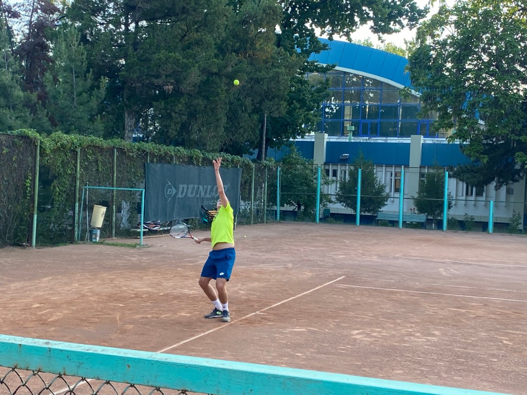 Wednesday night my son Owen and I played tennis on the outdoor hard courts of the Olympic Tennis School. He of course beat me 6-3 and we had a good time working on different aspects of our games. We were walking to the front gate after playing and we noticed on one of the clay courts a tall player hitting the ball extremely hard. It is easy to spot an elite athlete immediately because we both had that “wow” reaction. ATP professional tennis player Dennis Istomin was getting a workout at the school, just a couple of courts over from us. Istomin was born in Russia but moved to Tashkent when he was 3 years old and plays for Uzbekistan. Seeing professional athletes up close is always a thrill. Watching him for just a few minutes makes you realize how difficult it would be to return a serve from a professional. He is on the tail end of his career, but he still moved well and at 6-1 with long arms, he seemed to be able to cover both sides of the court effortlessly.