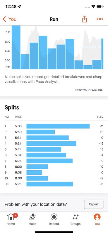 I was pleased with my performance. I don’t run often because I want to preserve my knees but I am glad I can still crank out a 10KM at a decent pace. With some training, I think I could have done better and I used the race as a training run. I always joke the name of the town should be Crystal Hills instead of Crystal Falls. There was a long hill at the 8-kilometer mark that really slowed me down as you can see with my splits below.