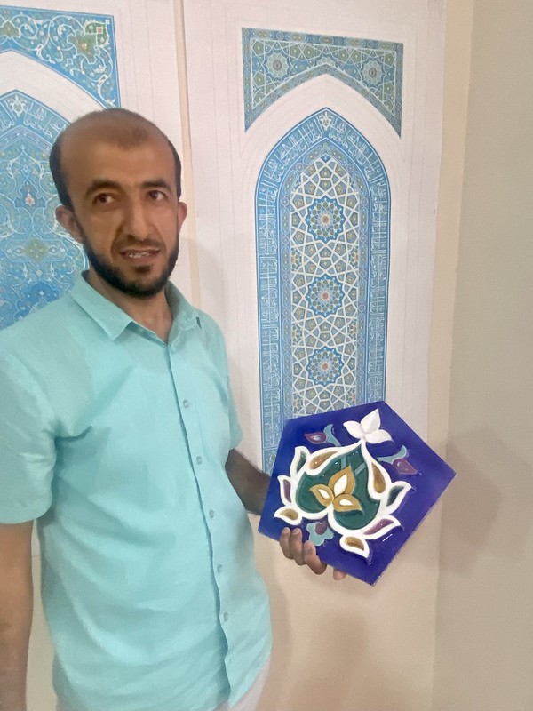 Patterned ceramic tiles are a big deal in Islamic architecture. Nadia is looking for tiles to put in a coffee table she is designing so we stopped a the workshop of a friend. It was located in an old school building . They were working on the tiles for a new Islamic library that is being built here in Tashkent. As you can see in the photo on the far left, the intricate patterns require many tiles. The scale of the building is immense. One of the masters is holding up one tile in front of a diagram of that one portion of the library wall. We found a couple tiles we liked although they were charging us a bit too much, so Nadia will continue looking for some less expensive tiles. It is cool that there are ceramic workshops like this throughout Uzbekistan.