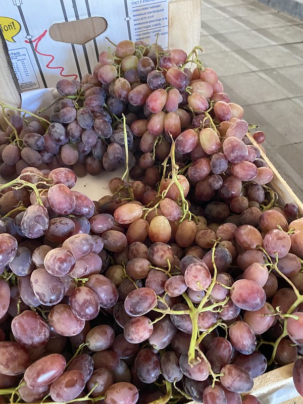 Uzbekistan has delicious table grapes. On sale, last weekend were two popular varieties, the Kish-Mish Kora (Black Kishmish) and the Rizamat. It is funny that a country with such outstanding table grapes does not produce excellent wines. There are many varieties and they are some of the juiciest and most tasty grapes I have ever tried. The dry climate and strong sun produces tasty fruits and vegatables.