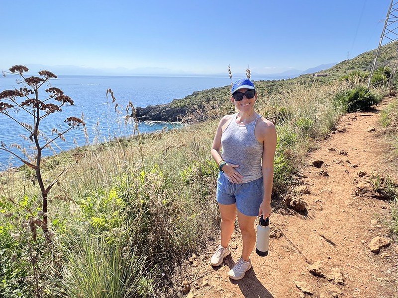 A highlight of my trip to Sicily was the Zingaro Riserva Naturale Orientata. This is a protected coastal area located between San Vito lo Capo and Scopello on the Golfo de Castellammare. We hiked 10 kilometers round-trip from the south entrance of the park to the fifth beach from the entrance, Cala Dell’ Uzzo. As you can see from the photos below, the views are spectacular and it was nice to have a Mediterranean landscape not filled with buildings or farms. We took the coastal trail and I wish we would have had time to take the inland, mountain routes. Cala Dell’Uzzo was the most beautiful of the beaches. It was not too crowded in the morning, with people coming from the closer north entrance or boats dropping anchor in the small bay. There is another protected area west of Zingaro, Monte Cofano that would be nice to hike as well. It was quite hot and Nadia had quite the workout. The water was a godsend and refreshed us enough for the 5-kilometer walk back to the parking lot.