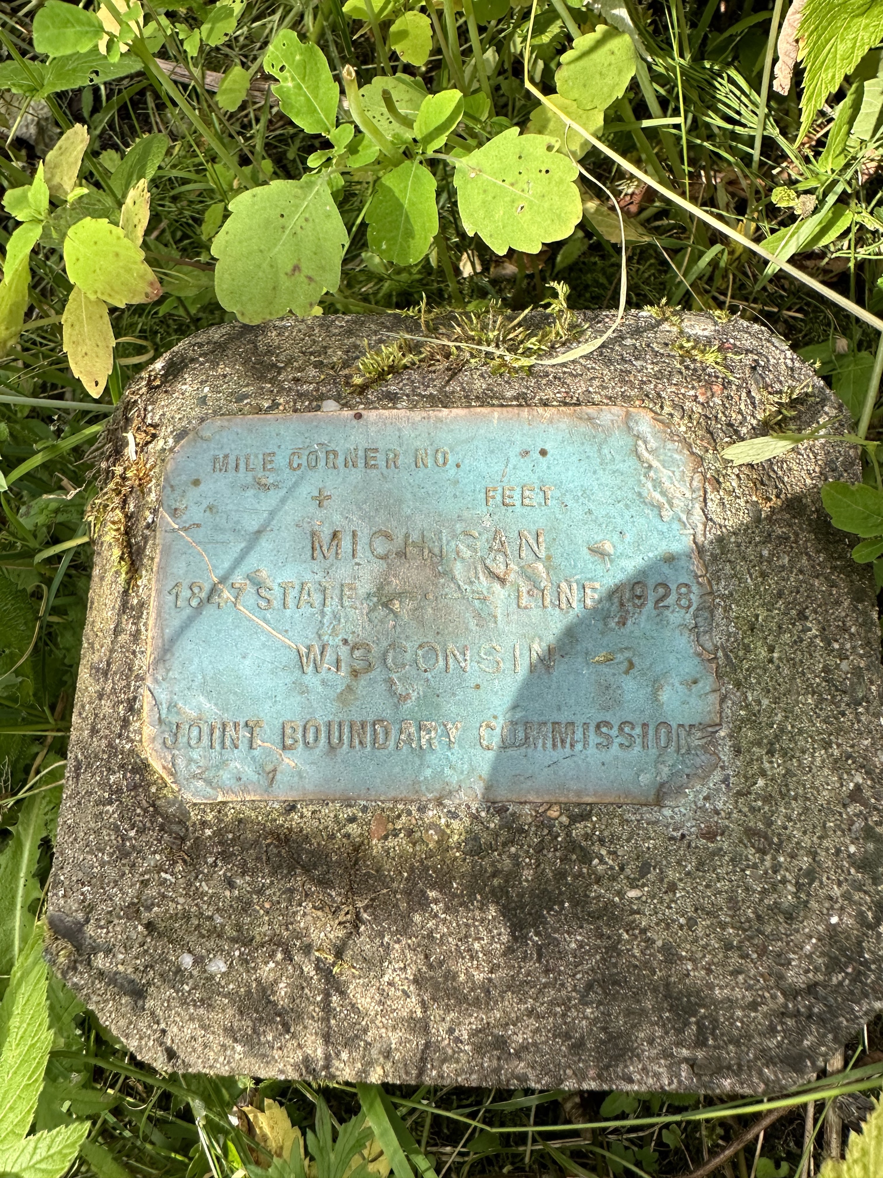 William A. Burt came back in 1847 to make it official and a monument is in place marking “Mile Zero”, which is the start of the land border between the Brule River, going to Lac View Desert and continuing to the Montreal River and eventually Lake Superior. In 1928 a Joint Border Commission put in the plaque below. The site is maintained today near a state campground. We had to clear some vines that were covering the marker.