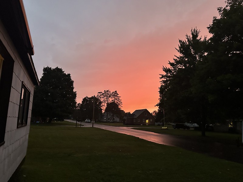 We stopped at Star Bucks and I shopped for eyeglasses in Marquette on the way home. My home village of Caspian is quite isolated and services like good restaurants and medical care are limited. We finished the evening with a Riverside Pizza from Iron River. There was a big thunderstorm with hail while we were eating. The sunset was spectacular. The fresh air and skies of the UP are relaxing. It was a great day!