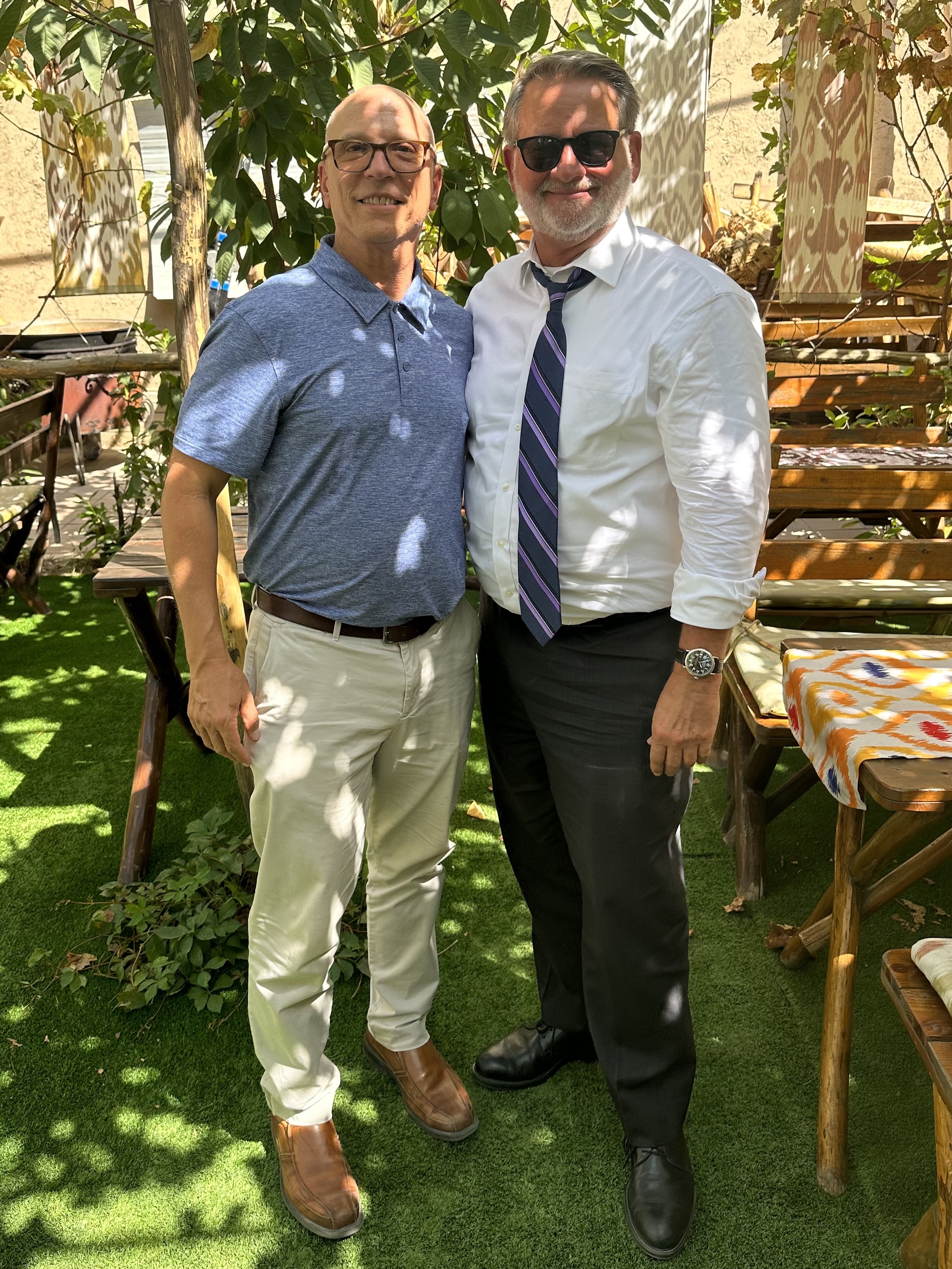 Michigan Senator Gary Peters was in Tashkent yesterday on a tour of Central Asia. He is the chair of the Homeland Security and Governmental Affairs Committee. The Senate committee has a broad range of responsibilities, both national and international, so I think his tour was part of his work as chair of the committee. I was invited to have lunch with him as the token Michigander! Senator Peters was down-to-earth and funny. He mentioned he had been through my hometown of Iron River on a motorcycle tour recently and we both agreed that it is a shame that so many young people leave the Upper Peninsula, like I did. Peters is a Democrat and won in 2020 by only 1.7%. Michigan is a “blue state” but only by a narrow margin. I am an independent voter and choose politicians by who they are as a person and look at their beliefs and voting record. I am pleased that Michigan recently has been more progressive than nearby states like Wisconsin and Ohio and hope that it continues in that direction. He was friendly and I was honored to meet him and get my photograph with him.