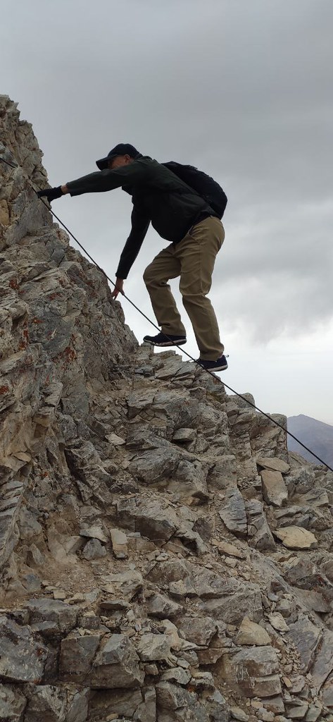 The last two kilometers is where it got rocky and interesting. Looking up at the peak, I couldn’t an easy route to the top. The guides led us on a windy route around huge outcroppings. We didn’t have to use ropes or crampons, but there were some technical sections that required using hands and feet to scramble over boulders. One section had a thick wire to assist climbers over a particularly steep cliff. I made it through without using the wire. I thank my yoga practice for my improved balance and flexibility.
