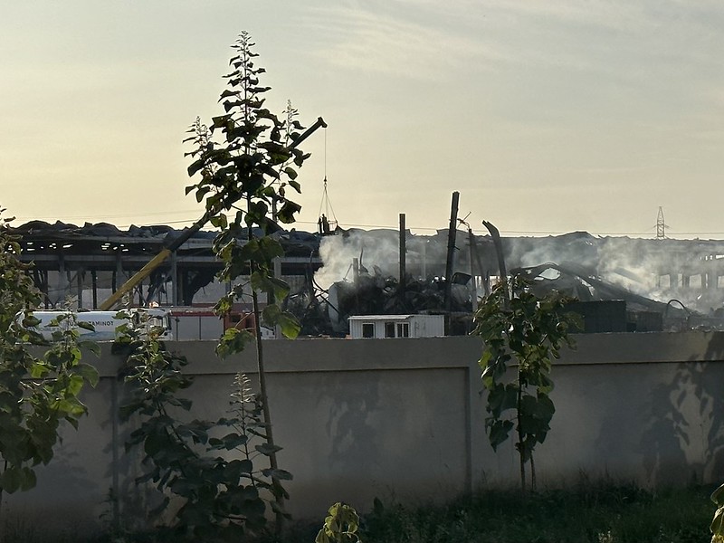 I visited the site today, Monday, to check it out. There were police, ambulances, soldiers, and construction workers at and near the site. Smoke was still coming from the rubble as cranes and construction trucks were cleaning the site. Many workers were replacing windows in the apartment blocks across the street from the warehouse. It was probably 200 meters between the first row of apartments and the warehouse so it must have been a powerful blast.