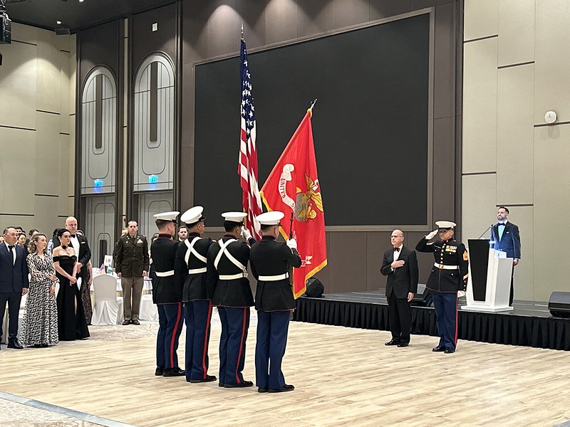 Last night Nadia, Oliver and I attended the United States Marine Corps Ball. The Marine Corps was founded on November 10, 1775 by order of the Second Continental Congress at the Tun Tavern in Philadelphia. 248 years later, the US Marine Corps is an elite military fighting force that has literally seen action all over the world. Battalions of Marines are assigned by the State Department to protect US embassies and the associated diplomatic mission.