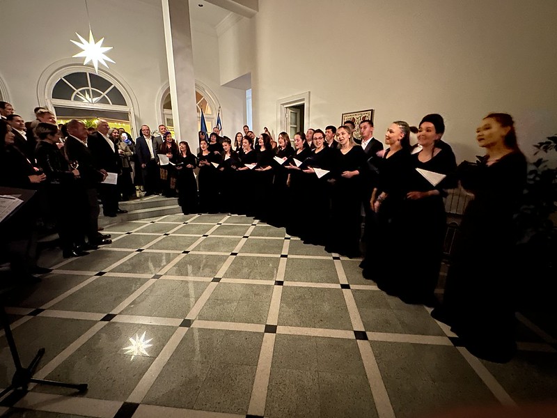 Nadia and I attended a Christmas Tree Lighting Ceremony hosted by the German Ambassador to Uzbekistan, Tilo Klinner. He has a beautiful residence and upon arrival, a full choir was singing in the atrium. His wife lit candle lights on the tree and he treated everyone to a delicious, Christmas dinner. I devoured the ham and scalloped potatoes. That is one of the perks of being a director of an international school is invitations to social events of the diplomatic community. Thank you Ambassador Klinner!
