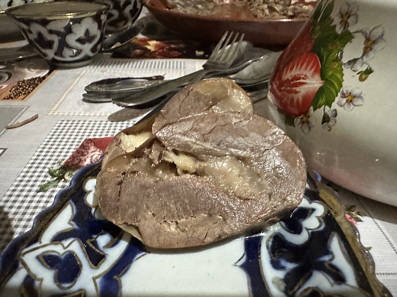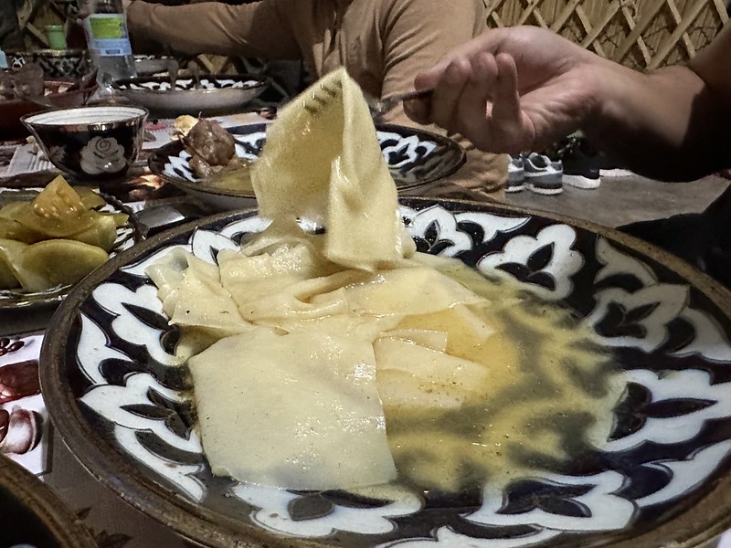 I was quite gassy Thursday night as my body is not used to so much meat. The pasta in broth was tasty and the meat was OK. Horse sausage was served with the meal and it was salty. It was a special evening for me. I love the friendship and camaraderie and felt honored that Oybek shared his ancestral culture with us.