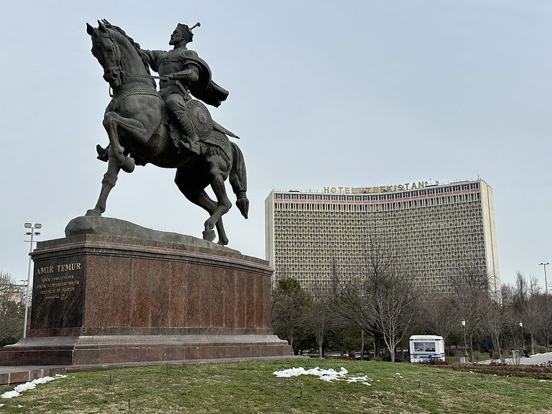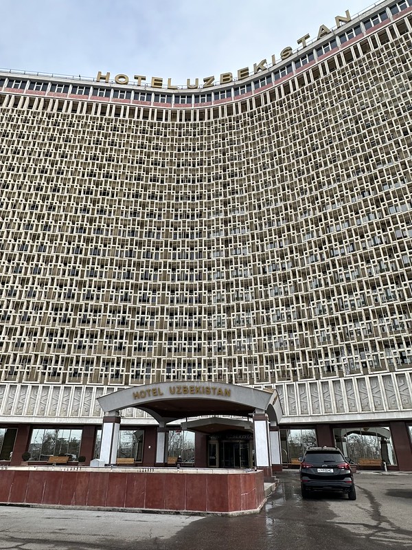 We started the tour at my favorite building in Tashkent, the Hotel Uzbekistan. I learned that it used to have an outdoor pool in back with an amazing roof and that the concrete facade hides utilities underneath.