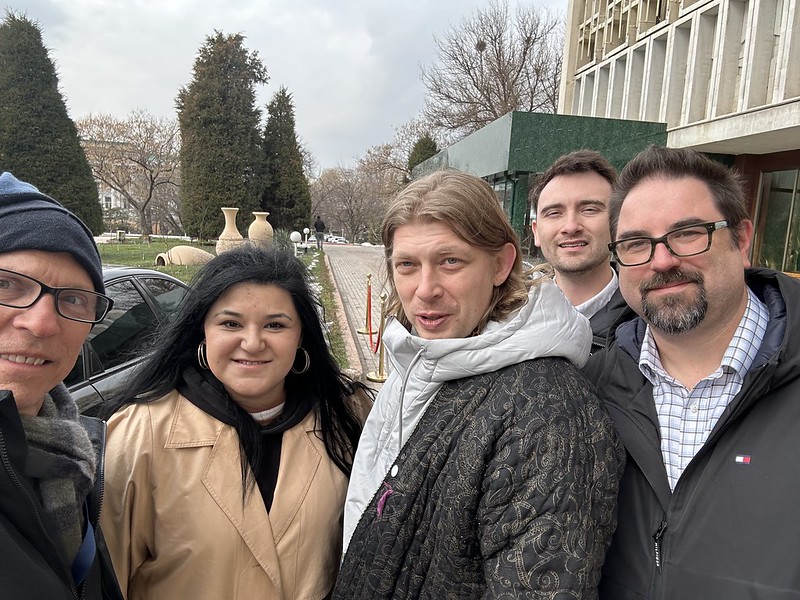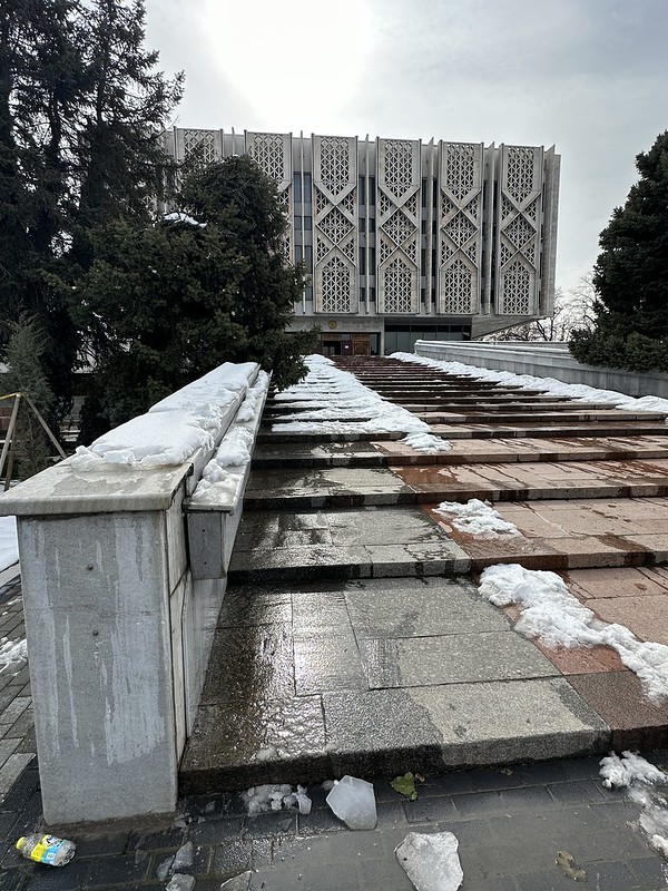 I had a fascinating afternoon touring Tashkent yesterday with architects visiting our school to renew our Master Site Plan. I wanted to give them the full flavor of Tashkent and Uzbek architecture. Alexander Federov led us on a tour focusing on Soviet-era modernist buildings. He is a graphic designer, artist, activist, historian, and passionate about preserving these historic buildings in Tashkent. His enthusiasm for Soviet-era “Oriental Modernism” was infectious. It was sad to learn how these buildings are slowly being replaced or altered. I understand the Uzbeks, however, and they might not want reminders of being colonized by the Russians. Something is lost if these buildings are not preserved. They are part of the history of the city and make Tashkent distinctive and add to its charm of east meets west.