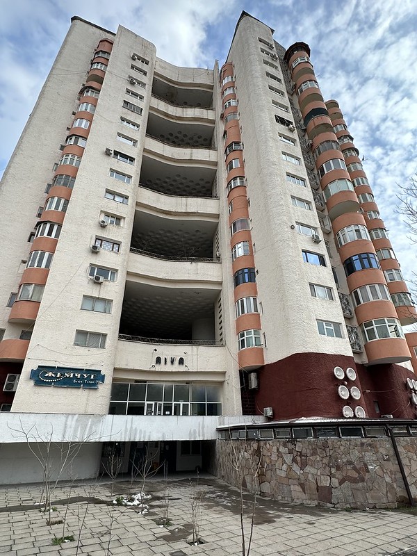 One of my favorite buildings is the Experimental House жемчуг “Pearls”. It was finished in 1985 and recreates the idea of the mahalla in apartment block form. As you can see in the photograph in the far right, there are 5 common areas that children and families can play and socialize, recreating the idea of the neighborhood streets. There was even a pool on the roof that is no longer working.