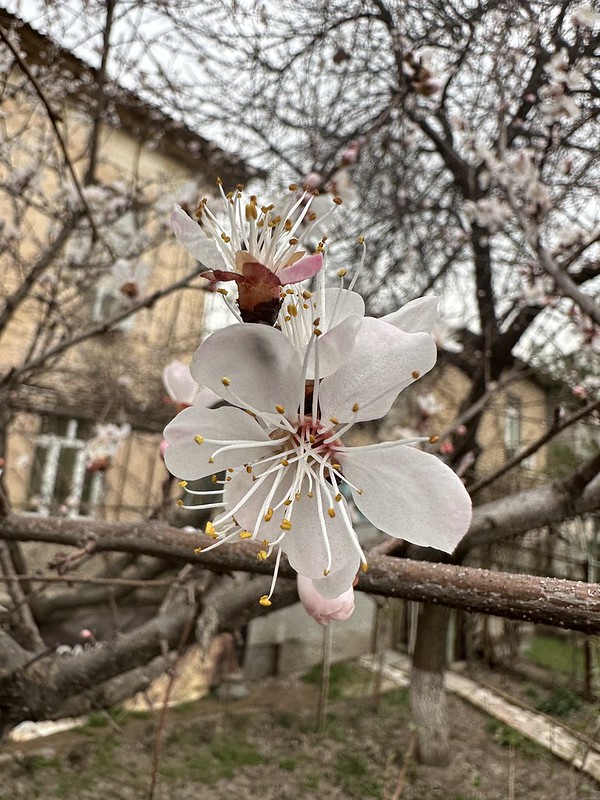 Spring has arrived in Tashkent! On my walk with Obi yesterday down my street, the apricot, plum, and cherry trees are starting to bloom. They come out before the leaves come out and the explosion of color is beautiful. The trees employ this strategy to attract pollinators without leaves getting in the way.