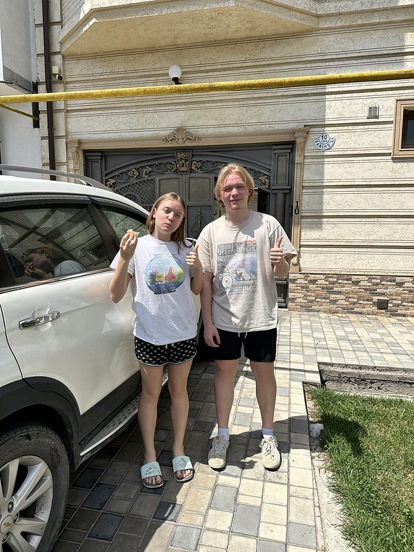 It is always hard to leave my family when I go away on business trips. I made Oliver and Ocean take a picture while I was getting into my Yandex. I spent Saturday morning with Nadia, taking her to her swimming club and then Ollie and I went grocery shopping. I also checked in at school to make sure everything was going smoothly with the PTO Garage Sale. Expats who are leaving Uzbekistan in June always appreciate the opportunity to sell some of their stuff they are not shipping on to their next post.