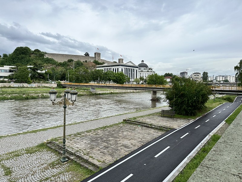 I had a nice afternoon yesterday. I went for a five kilometer run along the Vardar River path and did a loop through City Park. I loved the humid air after the thunderstorm and the green trees. Much different from the desert climate of Tashkent. I did a yoga session and then Nadia and I went out to “Stara Kukja” (Old House) restaurant with the other directors and their partners. I had a Šljivovica (plum brandy) appertif and a hearty, Macedonia meal of lamb, beef, pork and accompaniments. We walked back through the lighted city and the Stone Bridge was beautiful and reminded me of Ivo Andrić’s book, Bridge over the River Drina. The famous historical fiction work set in Ottoman-era Bosnia.