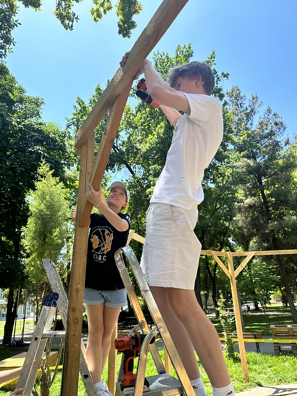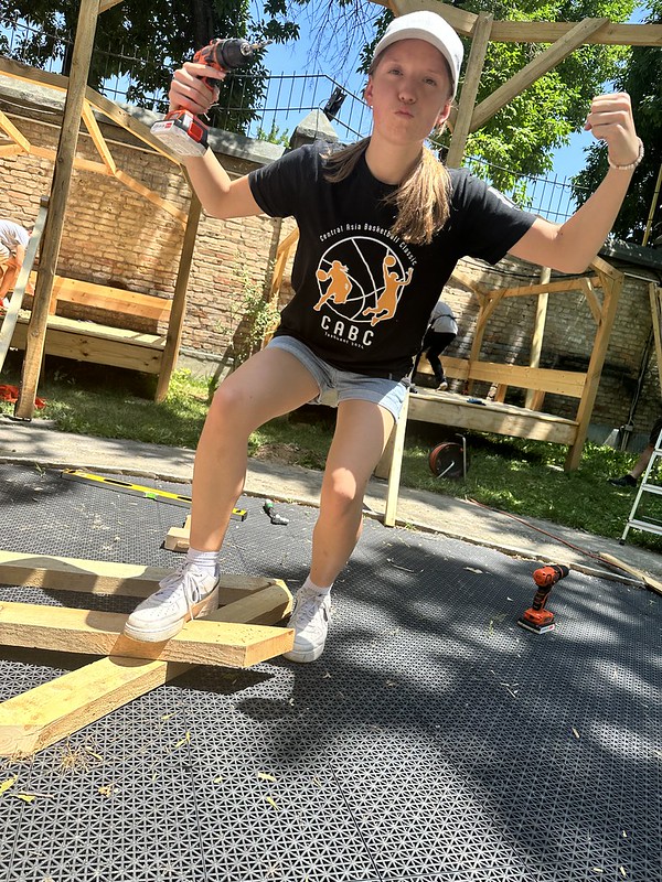 I was tickled to see Ocean building a pergola in her design class at school earlier this week. She loves working with her hands and is quite good at woodworking and contract work. Her Uncle Andy would be proud! The class designed and is building an outdoor relaxation area for the school which includes two topchans, an outdoor pizza oven, and a pergola sitting area.