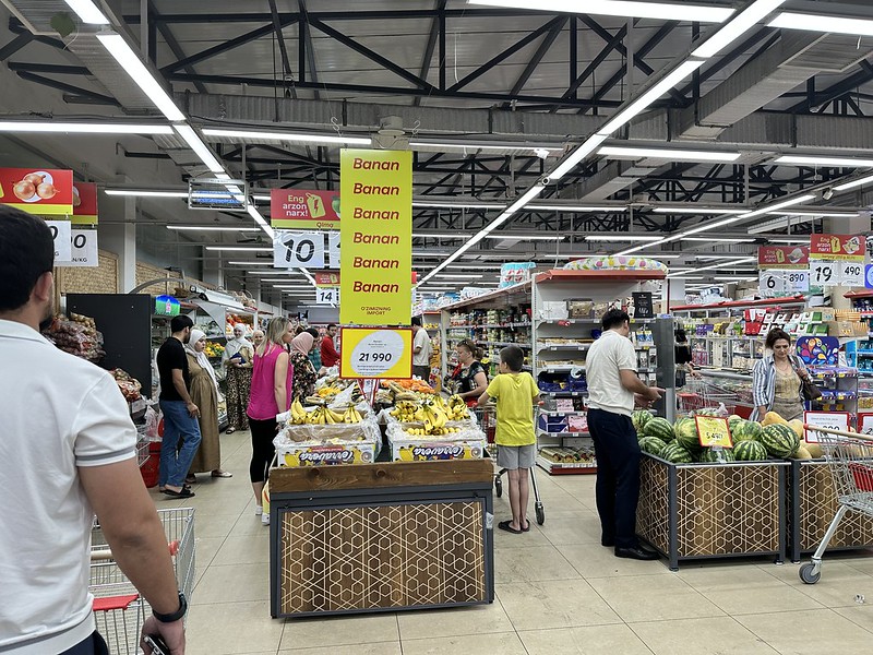 Uzbek culture is a nocturnal one, especially during the summer months. I took the photo above in our local supermarket “Korzinka” (basket or trolley in Uzbek) at 10:15 PM on a Tuesday evening. The store was full! If this was America, there would be much less shoppers in the grocery store at this time, with peak times most likely immediately after work on weekdays (4:00 – 7:00 PM) and on weekends from 10:00 AM – 1:00 PM. Not so here in Uzbekistan. I especially notice early mornings, most people are still in bed. I think in part it is the culture, Ramadan is another time that encourages people to sleep in, and in the summer, the hot weather.