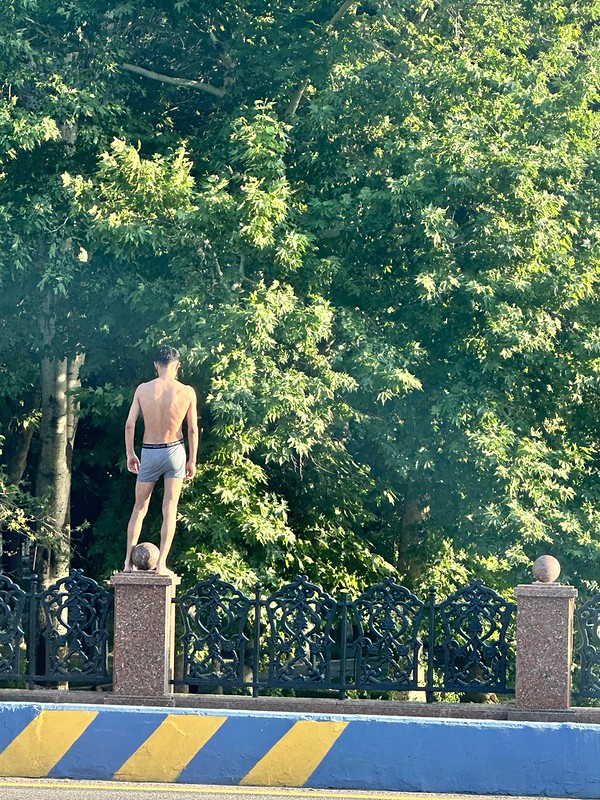 I had to laugh seeing guys in their underwear while driving in Tashkent. They were jumping from the road bridge into the canal. Swimming in the canals is a Tashkent tradition during the summer. They eschew swim trunks, probably for financial reasons. The current is quite strong and the water cold, but it must feel refreshing as I often see mostly older Russian men and women and then Uzbek guys, cooling off. I don’t know the water quality and there must be drownings because of the swift currents. One of the signs of summer…