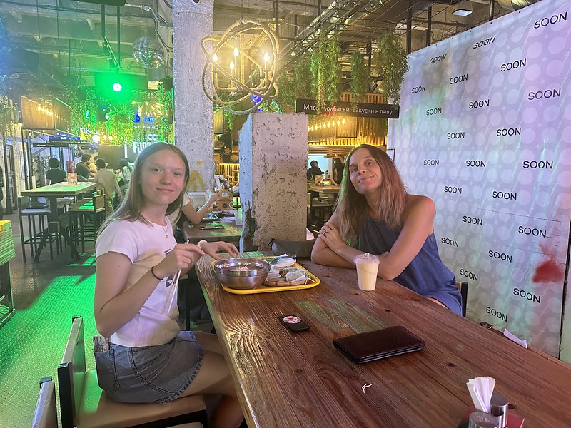 The city is developing at breakneck speed after 25 years of a repressive government under the first Uzbek President, Islam Karimov. Friday night we wanted to leave the house because my son Oliver was hosting a party of his friends. I wanted to check out FoodMall Tashkent and it was really good. It is modeled after those food courts you find in shopping malls and other areas that recreate an Asian night food market. Ocean tried Pho Boss (Vietnamese) and I tried the Thai stand. Both dishes were delicious. It is near Westminster University and there were a lot of upper class, hip university-age people there. I thought the music was a bit too loud, but other than that, it was a good experience.
