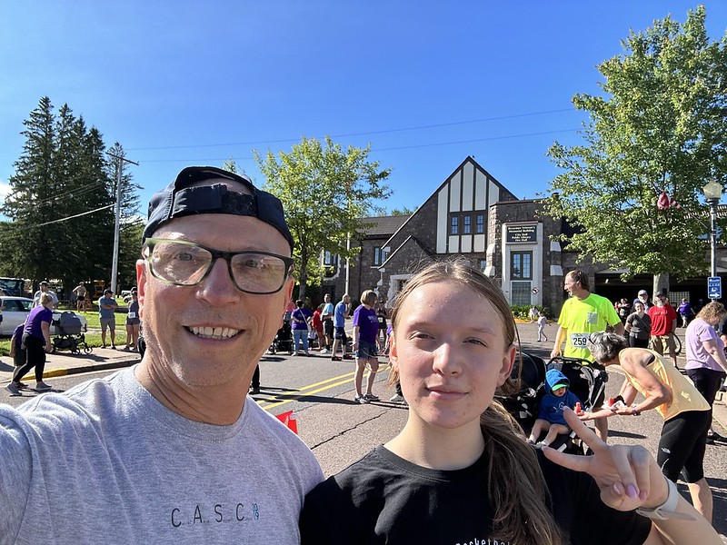 Ocean and I ran the 3.22-kilometer Bessemer, Michigan, Hometown Road Race. She doesn’t like distance running and getting up early in the morning, but Ocean came along because she loves me. I loved running with her and we finished the race in under 18 minutes. Bessemer is a little town (1,805 people) located northwest of Caspian, in neighboring Gogebic Country. The race started at the new town hall downtown and finished on the main street. I wanted to run the 10-kilometer, but I could only get her to do the 2-mile run. We went for coffee and chai lattes at Contrast Coffee in Ironwood and explored downtown. Ironwood officials have done a good job in preserving their downtown buildings amid population decline. They also market the outdoors of the area well. I think having Gogebic Community College in the town helps. They are closer to Lake Superior and get a lot of snow so year-round, it is a very cool place to live. It is a 1 hour and 17 minute drive from my driveway to the race start. I played baseball against Bessemer High School in the early 1980s. Visiting their beautiful Massie Baseball Field brought back a lot of memories.