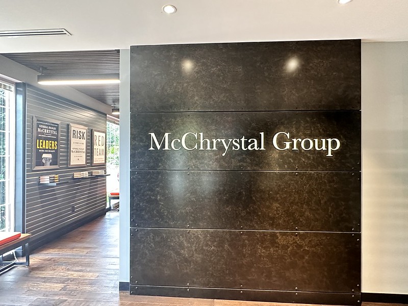 After retiring from military service, McChrystal started a business management consulting firm that helps companies collaborate better. They work mostly with larger companies like petroleum companies and large pharmaceutical companies. It was nice to get to experience this as a leader of a non-profit. They were great hosts and it was a fascinating glimpse into the world of the military and of high-powered, executive consulting services.
