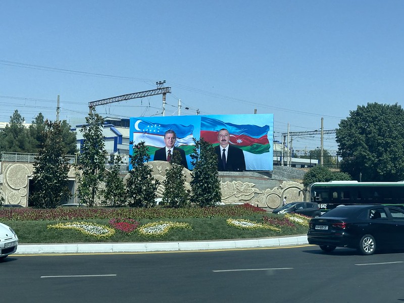 I end this post with a classic Central Asian motif. I appreciate when the Azerbaijan President Ilham Aliyev visits Tashkent because the traffic circle near the park named after his father and the Azeri neighborhood in Tashkent gets an upgrade. This time, they planted grass, flowers, and trees in the circle and put up a new photo billboard of the host, Uzbek President Mirzoyoyev and President Aliyev. There were a few traffic delays as the official delegations moved through the city, but the visit was mostly uneventful. I see the countries of Central Asia and the Caucasus region coming closer together. They are also being pulled in different directions by the big players in the region, Turkey, China, and Russia. It is fascinating to see how this will play out.