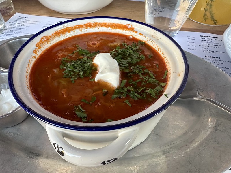 I had a nice day of yoga and riding my bicycle. I rode the main canal in the city. Cooler temperatures are finally here with mornings in the 60s and highs in the 80s. I also caught up on yard work and taking care of things around the house. Our big activity was eating at a new restaurant in the city, Kaspiyka. It is a Russian-owned seafood restaurant with restaurants in Moscow, Baku, Kazan, and now Tashkent. Russians have improved dining experiences here in Tashkent. It is nice to have fresh seafood in a double-landlocked country. It must be flash frozen. My favorite dish was солянка (Solyanka) which is a traditional Russian sour soup. We finished the night with drinks at the Hyatt rooftop bar.
