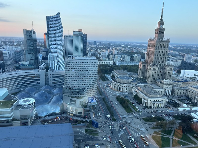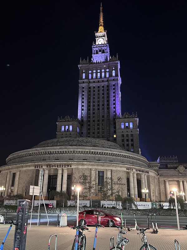 On Saturday night we had a light dinner and drinks at the Panorama Sky Bar on the 40th floor of the Marriot Hotel. The views of Stalin’s Palace of Culture and Science were spectacular. Completed in 1955 in an Art Deco / “Seven Sister” Stalinist Tower architectural style, it is a distinctive landmark in downtown Warsaw. I read some critics want to demolish it as it was built by the Soviets and serves as a huge reminder to that horrible oppression, but I think it would be a shame. I would love to tour inside and I see where there is a university, theatres, concert hall, shops, swimming pool, convention hall, etc.