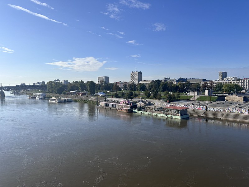 My room was not ready when I arrived early Thursday morning so I went for a long walk down to and along the Vistula River. The Vistula is the longest river in Poland (1,047 kilometers) and originates in the mountains of the border region with the Czech Republic and Slovakia and flows through Krakow and Warsaw. It is one of Poland’s national symbols “Country upon Vistula” (Polish: kraj nad Wisłą) and would be somewhat similar to the Mississippi River in the USA or the Magdalena River in Colombia. It flows north and empties into the Baltic Sea between Gdansk and the Russian enclave of Kaliningrad. I remember the last time I was on the Vistula, ten years ago in Krakow. Ollie and Ocean were angels!