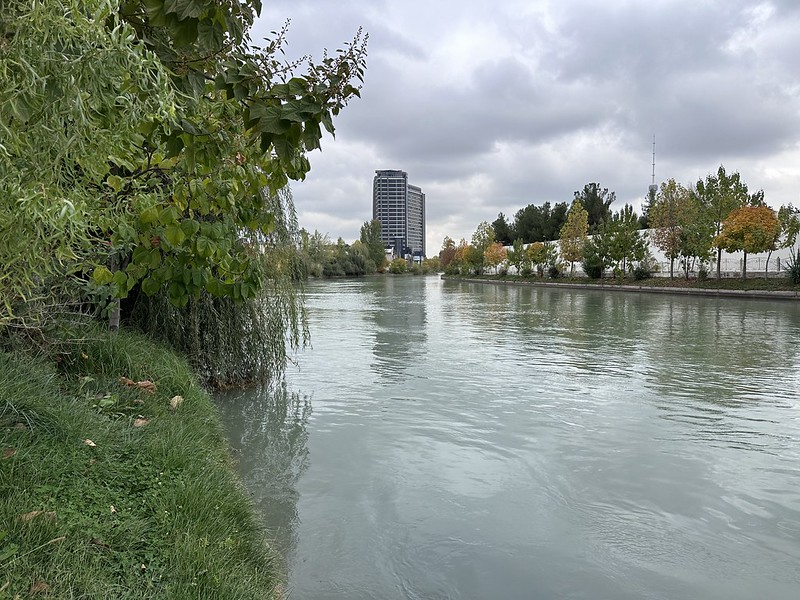 Autumn has definitely arrived in Uzbekistan with temperatures in the 50s and overcast days. In a dry, sunny climate, these cool, cloudy days are refreshing. I was inspired to go for a 10-kilometer run along the Ankhor Canal yesterday. The Ankhor Canal’s water comes from the Chirchiq River and city officials improved the promenades along the canal in 2014 near the Minor Mosque. The older part of the canal goes by Pakhtakor Stadium and is my favorite place in Tashkent. I love looking at the Doma Specialistov, the apartments were built in the Stalin era for specialists and intelligentsia. The canal runs 23.5 kilometers through the city and ends in the lake at Milly Bog National Park. The canal was built in the mid-1800s and divided Old Town, or the original part of Tashkent, from the new, European-style city constructed by the Russians.