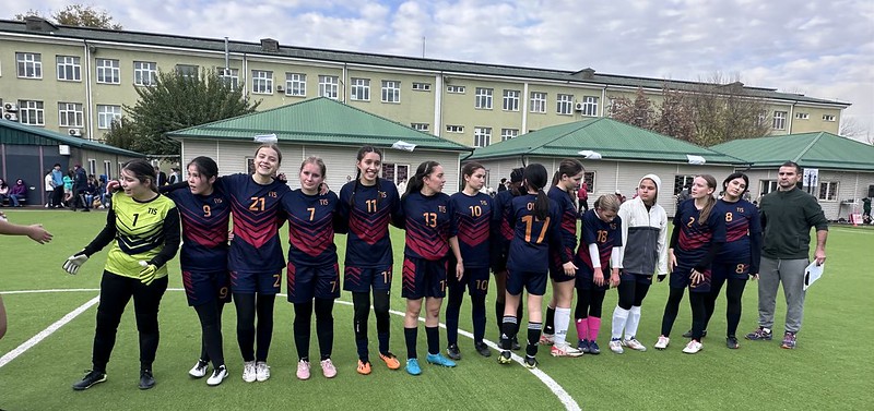 Ocean’s high school varsity soccer team is hosting the Central Asian Soccer Classic, the culminating tournament of the Central Asia Federation of Athletics and Activities (CAFAA). This group of international schools in Uzbekistan, Tajikistan, Turkmenistan, Kazakhstan, and Kyrgyzstan, competes in cross country, soccer, basketball, volleyball, and track & field. My school, Tashkent International School is hosting the championship. My daughter Ocean is an excellent athlete and starts for the team. I got to watch her first game yesterday against the QSI Astana International School and they tied 2-2. Ocean played excellent defense and I thought the Owls were lucky to get the victory. They played better in the second half after falling behind 0-2 in the first half. They improved by kicking the ball harder and from further out at the goal.