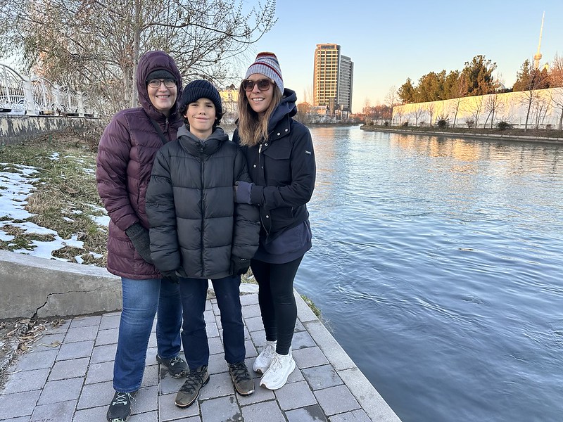 The highlight of the day was walking along the Ankhor Canal with our guests, Sarah, Emma, and Beau. Temperatures were pretty much below-freezing the entire day so it was a brisk walk. It is one of my favorite things to do in Tashkent and it was nice to share it with visitors. I love snow and ice! We warmed up by stopping at Bon Cafe for hot chocolates and later on the Tashkent Food Mall. In between taking care of work stuff, I watched the College Football Playoffs, did some yoga and just hung out and talked with my family. A great day!
