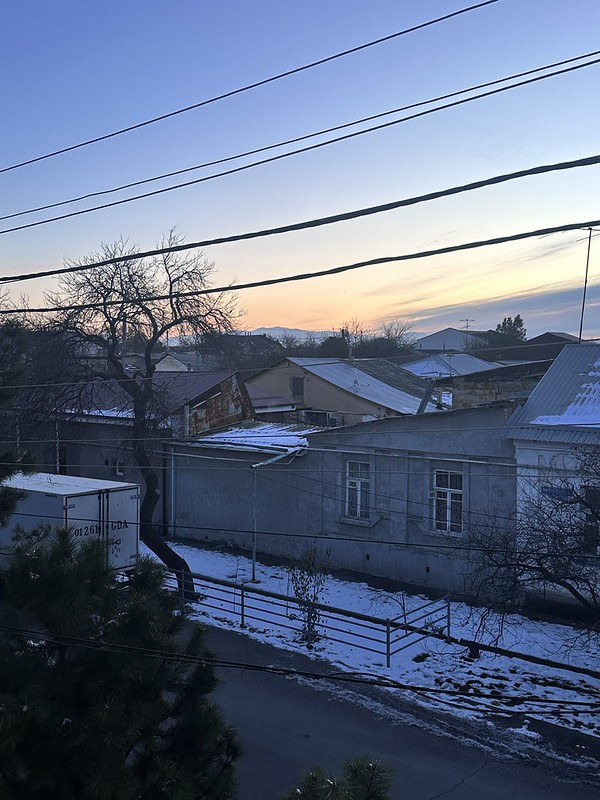 The highlight of the day was walking along the Ankhor Canal with our guests, Sarah, Emma, and Beau. Temperatures were pretty much below-freezing the entire day so it was a brisk walk. It is one of my favorite things to do in Tashkent and it was nice to share it with visitors. I love snow and ice! We warmed up by stopping at Bon Cafe for hot chocolates and later on the Tashkent Food Mall. In between taking care of work stuff, I watched the College Football Playoffs, did some yoga and just hung out and talked with my family. A great day!