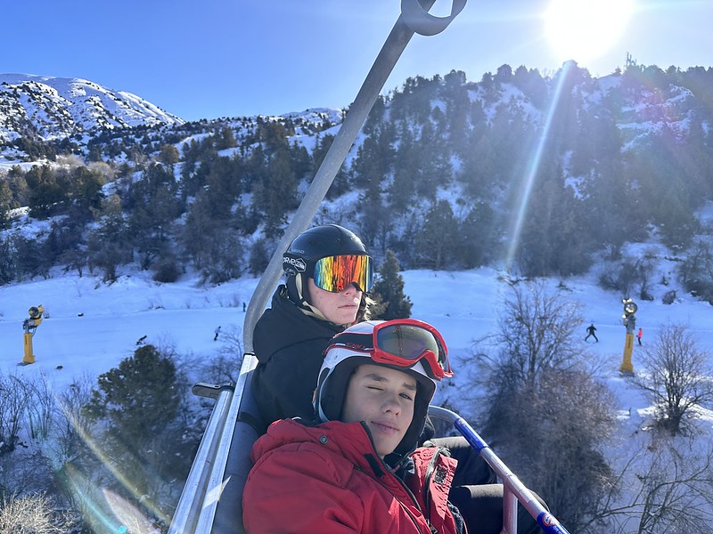 We had a nice Christmas morning with breakfast delivered to the chalet and a few hours of skiing. We only bought lift tickets for the bottom half of the mountain due to the thin snow cover and icy conditions above the snow-making machines. I needed to concentrate with lots of ice patches on the snow. Breakfast was delicious, I love Central Asian porridge. The best thing about the trip was just spending time with the kids. Driving back home reminded us all the road trips we used to take when we were younger.