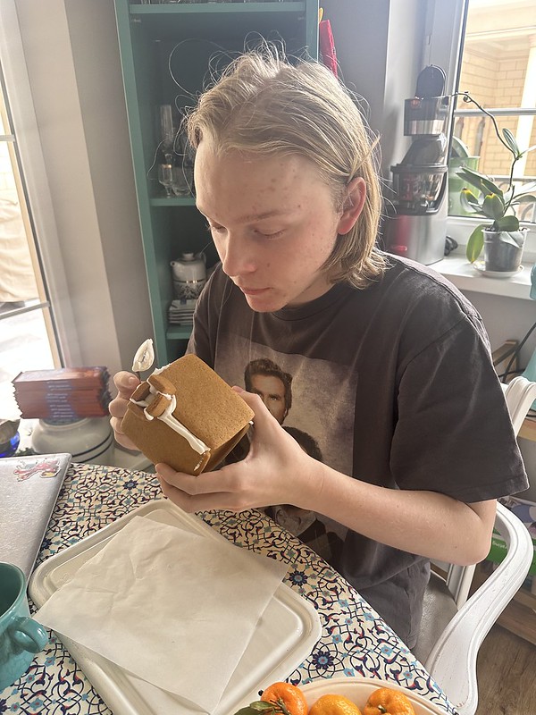 It has been so nice to have our family together again and Nadia and I are spending as much time as we can with them. It is fun just to hang out at home in the evenings, watching movies, making dinner, etc. Our guest Sarah baked gingerbread houses for the kids to decorate. Oliver and I loved watching the Fulham FC game in the English Premier League last night. I am looking forward to my trip to London next month.