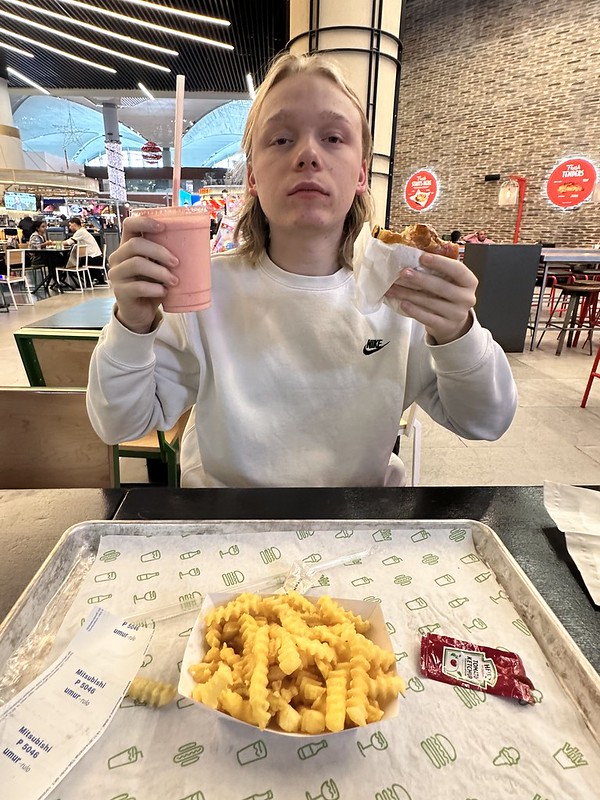 The flight from Tashkent to Istanbul was five hours. We were delayed in boarding the flight because the computers were down at Turkish Airlines. The gate desk employee had to write the information on the boarding pass. It reminded me of flying in the early 1990s when all of the boarding passes were like that. Oliver recommended a stop at Shake Shack, the US burger chain while we were waiting for our connecting flight in Istanbul. It was a good call. The burger and shake really hit the spot! I fly a lot through Istanbul and am familiar with all the restaurants and shops. They charge excessive prices which is unfair.