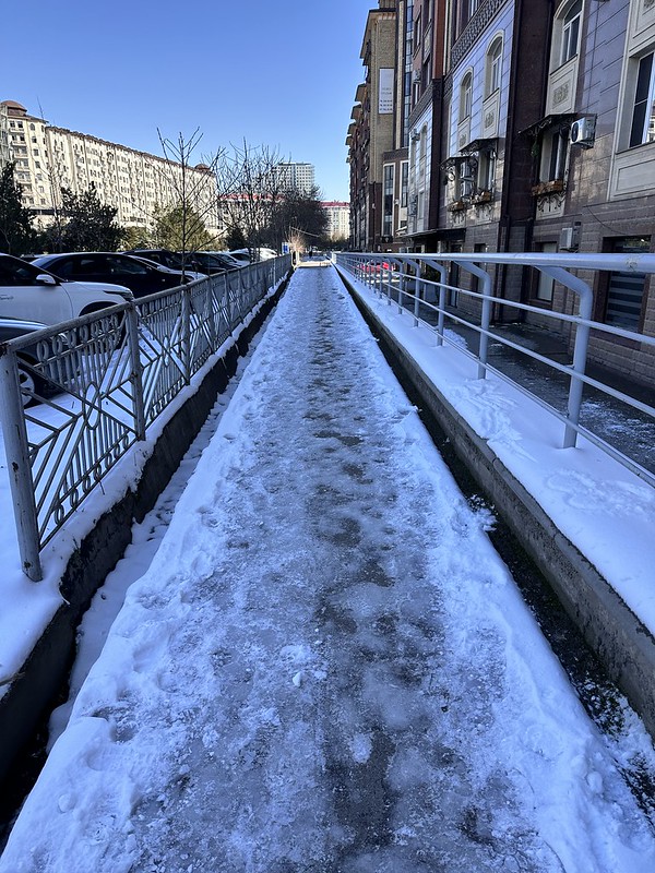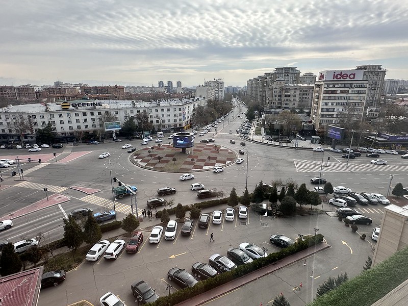 Above is a view from the rooftop restaurant of the Grand Mir Hotel. The busy roundabout is at the intersection of Mirabad Avenue, Shota Rosevelit Avenue, and Shakrisabz Street. We are scouting locations for the accommodation of new teachers when they arrive in August. The Grand Mir is a historic hotel. Built in 1960 and named the Hotel Russia, today it is a 4-star hotel in a prime location in the city.