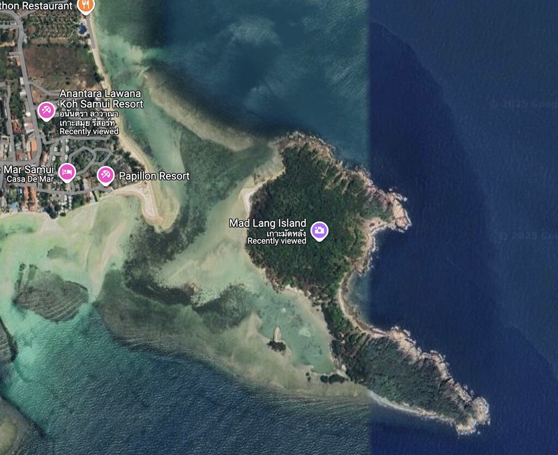 The highlight for me at the resort we stayed at on Koh Samui was a small island just off the hotel beach. Mad Lang Island (Google Maps below) was about 400 meters off the coast, and during low tide, you could walk to it. Ocean and I paddled our kayaks over the island a couple of times. The beach was full of plastic garbage and with rocks and thick vegetation, it seemed to be impossible to explore the interior of the island. I finally climbed a large boulder that led to a trail on the backside of the rock. I followed the trail to the other side of the island, and it led to an abandoned Buddhist Shrine (below). The shrine is located on the highest part of the island and offers some beautiful views. Nāgas are associated with water deities and protect sailors and fishermen from storms, so it is appropriate to find this shrine on a small island in the Gulf of Thailand. The trail continued around the island coming back to beach. I am surprised that it is unmarked and not kept up by the resort. It would be a fun project to improve the trail, add directional signs and provide information at the shrine.