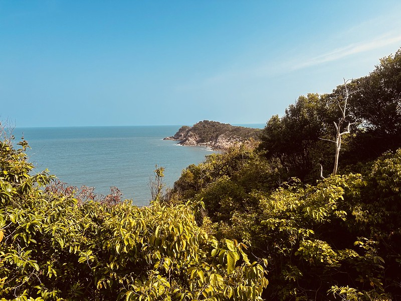 The highlight for me at the resort we stayed at on Koh Samui was a small island just off the hotel beach. Mad Lang Island (Google Maps below) was about 400 meters off the coast, and during low tide, you could walk to it. Ocean and I paddled our kayaks over the island a couple of times. The beach was full of plastic garbage and with rocks and thick vegetation, it seemed to be impossible to explore the interior of the island. I finally climbed a large boulder that led to a trail on the backside of the rock. I followed the trail to the other side of the island, and it led to an abandoned Buddhist Shrine (below). The shrine is located on the highest part of the island and offers some beautiful views. Nāgas are associated with water deities and protect sailors and fishermen from storms, so it is appropriate to find this shrine on a small island in the Gulf of Thailand. The trail continued around the island coming back to beach. I am surprised that it is unmarked and not kept up by the resort. It would be a fun project to improve the trail, add directional signs and provide information at the shrine.