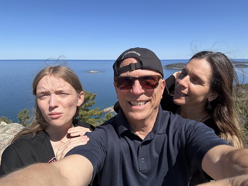 We took some time on Sunday to enjoy beautiful Lake Superior and the surrounding forests. We hiked up to the top of Sugarloaf Mountain, about a 15-minute drive out of town. The lookout offers spectacular views of Lake Superior on one side, and Hogback Mountain on the other side. Owen took us to Wetmore Landing, a beach a further 5 minutes up the coast. Most of us went for a quick swim (water is very cold in May) and hung out at the beach for an hour. The fresh air, blue skies, cold water, and cool pines/moss are so relaxing for me.