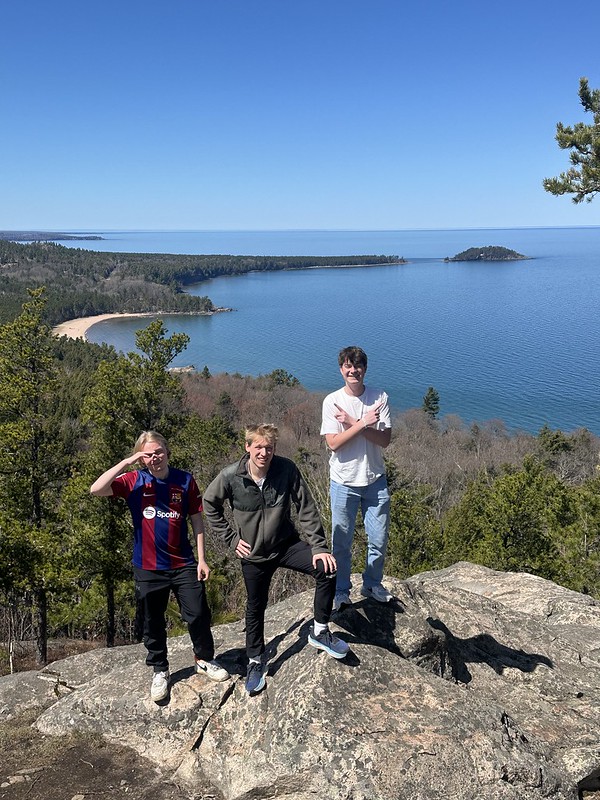 We took some time on Sunday to enjoy beautiful Lake Superior and the surrounding forests. We hiked up to the top of Sugarloaf Mountain, about a 15-minute drive out of town. The lookout offers spectacular views of Lake Superior on one side, and Hogback Mountain on the other side. Owen took us to Wetmore Landing, a beach a further 5 minutes up the coast. Most of us went for a quick swim (water is very cold in May) and hung out at the beach for an hour. The fresh air, blue skies, cold water, and cool pines/moss are so relaxing for me.
